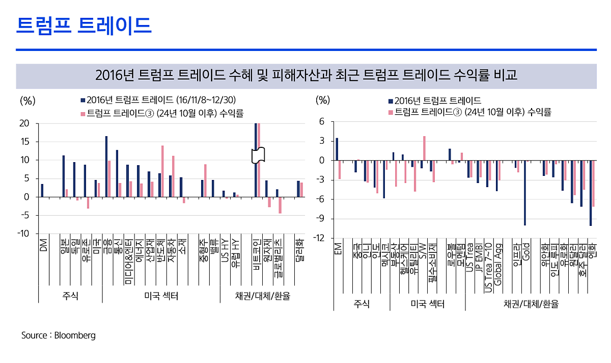 - 제조업 관련주 : 트럼프의 정책은 미국 내 제조업체들에게 유리하게 작용했습니다. 특히, 하이젠알앤엠과 레인보우로보틱스와 같은 기업들은 주가가 급등하며 주목받고 있습니다.